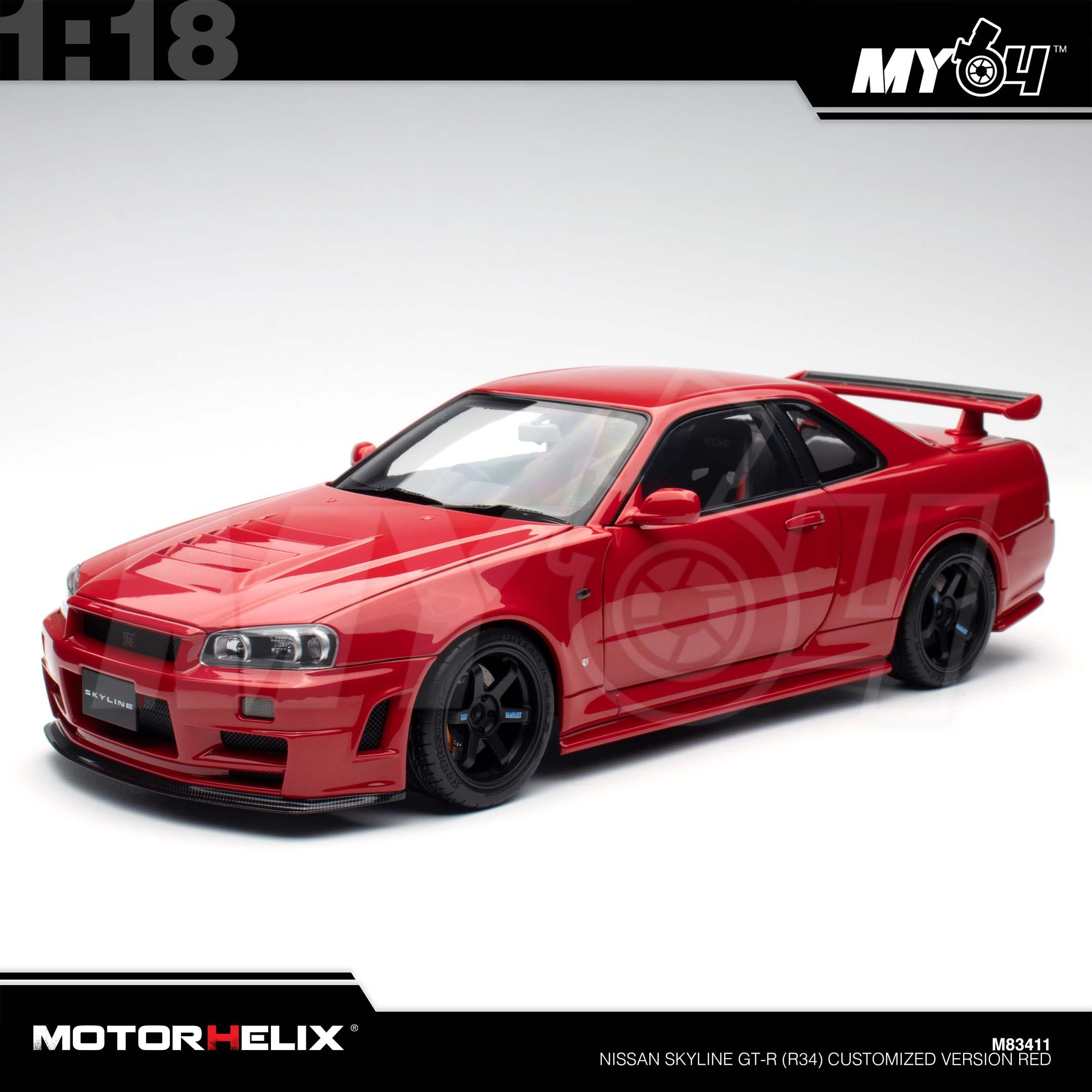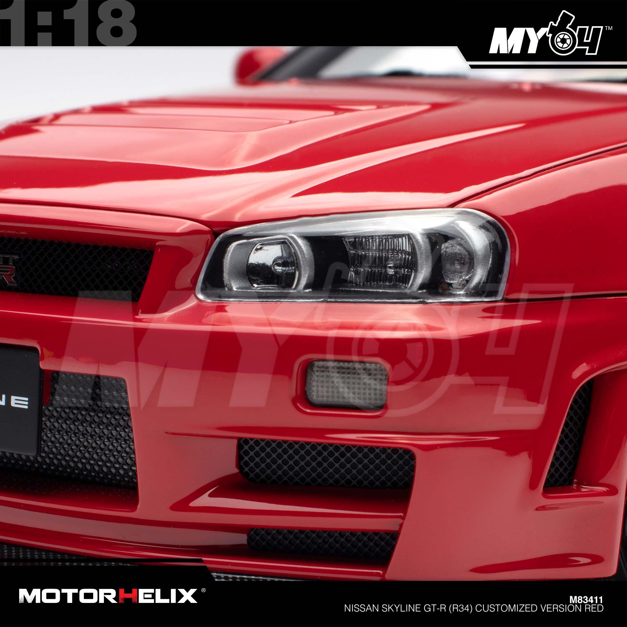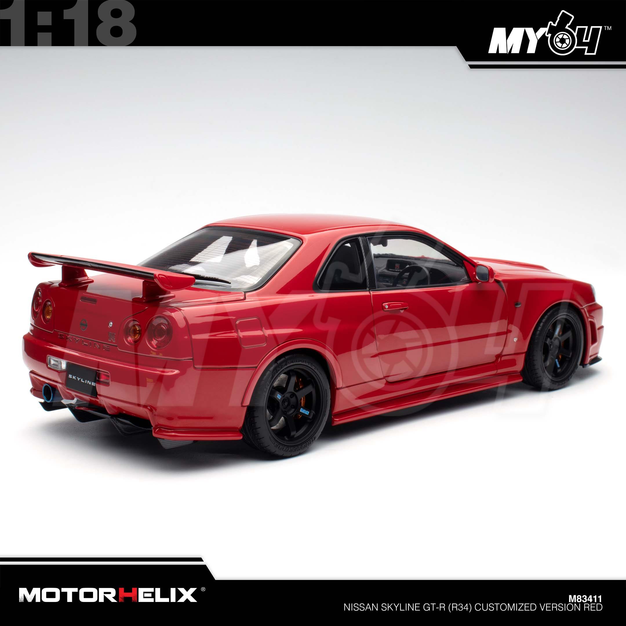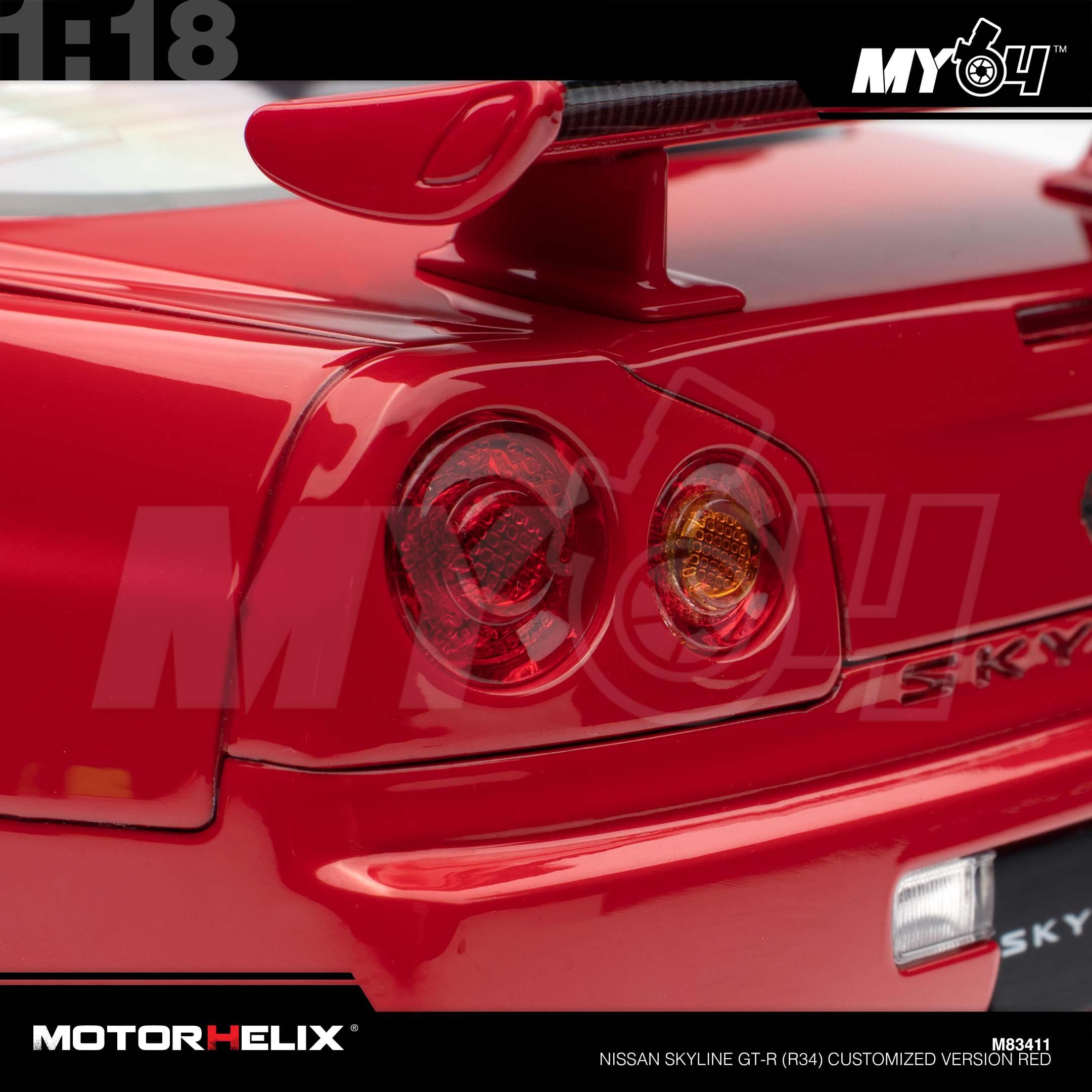 1:18 MOTORHELIX Nissan Skyline GT-R (R34) Customized Version Red