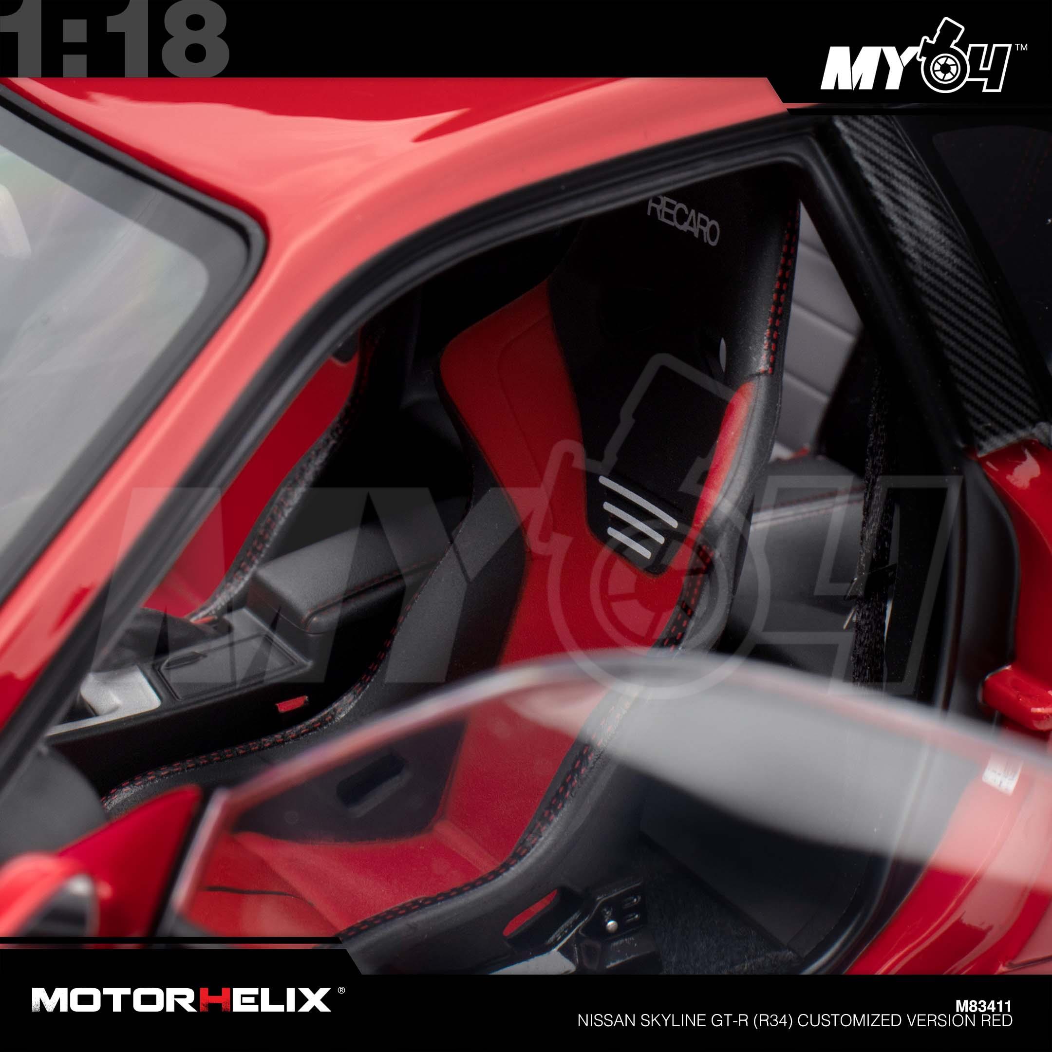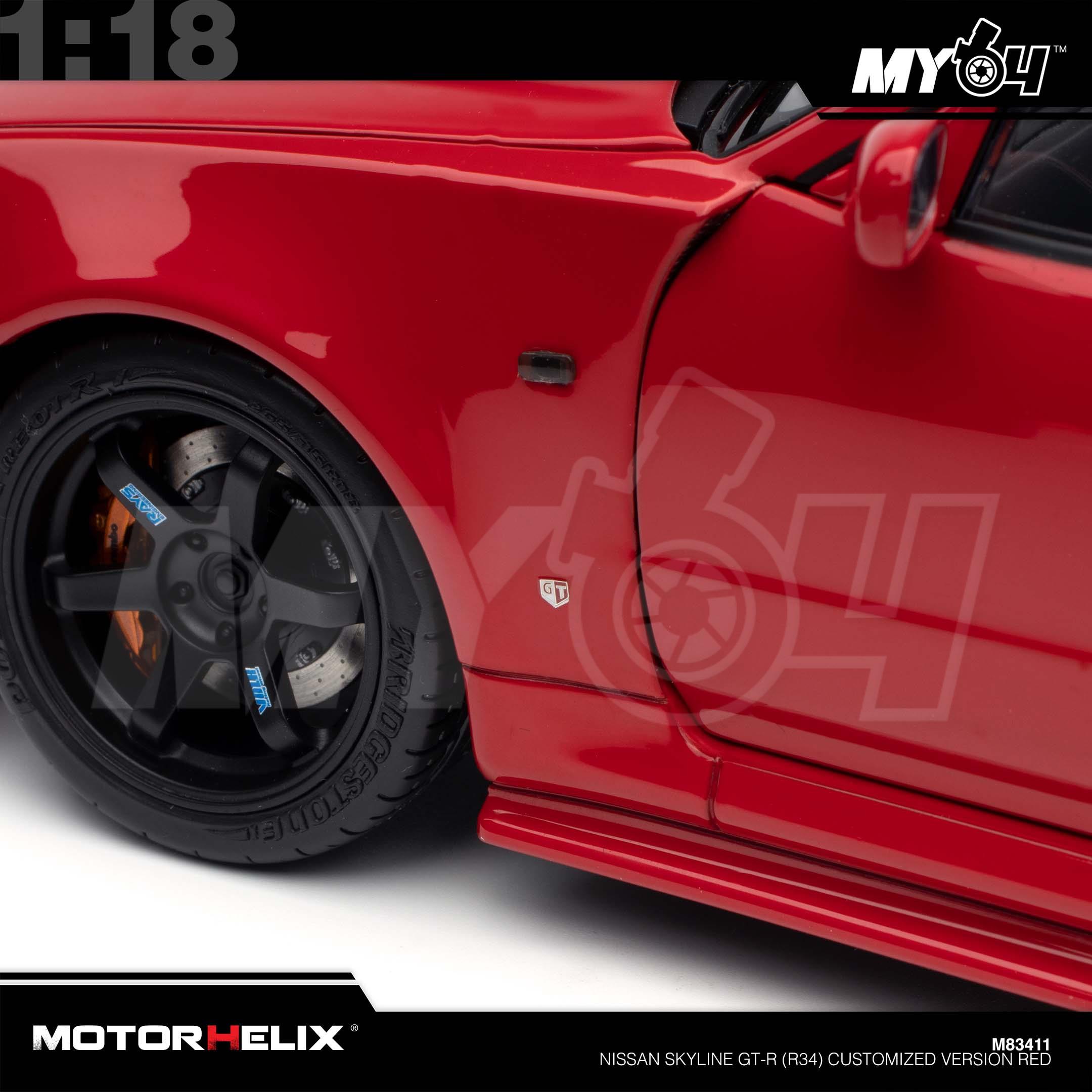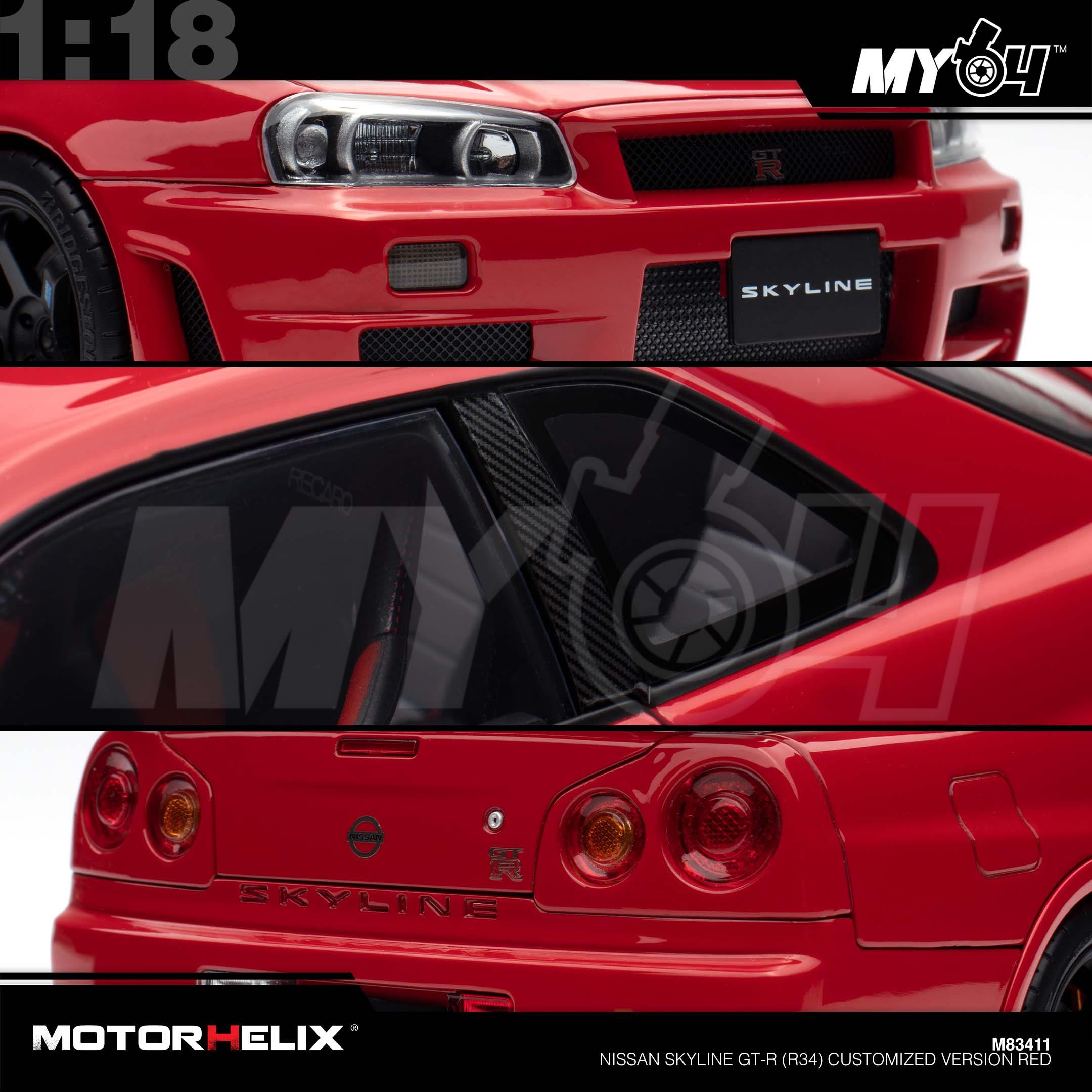 1:18 MOTORHELIX Nissan Skyline GT-R (R34) Customized Version Red