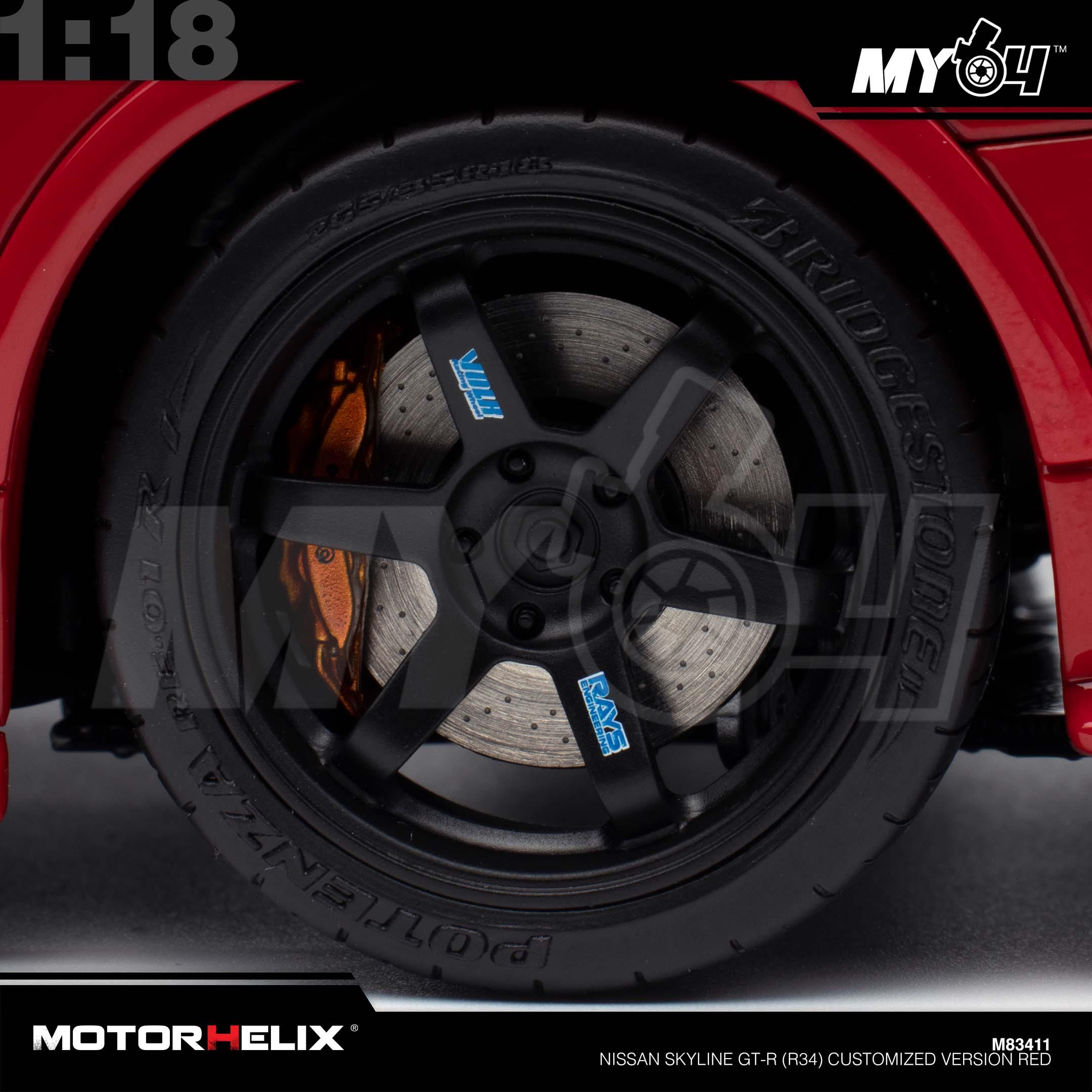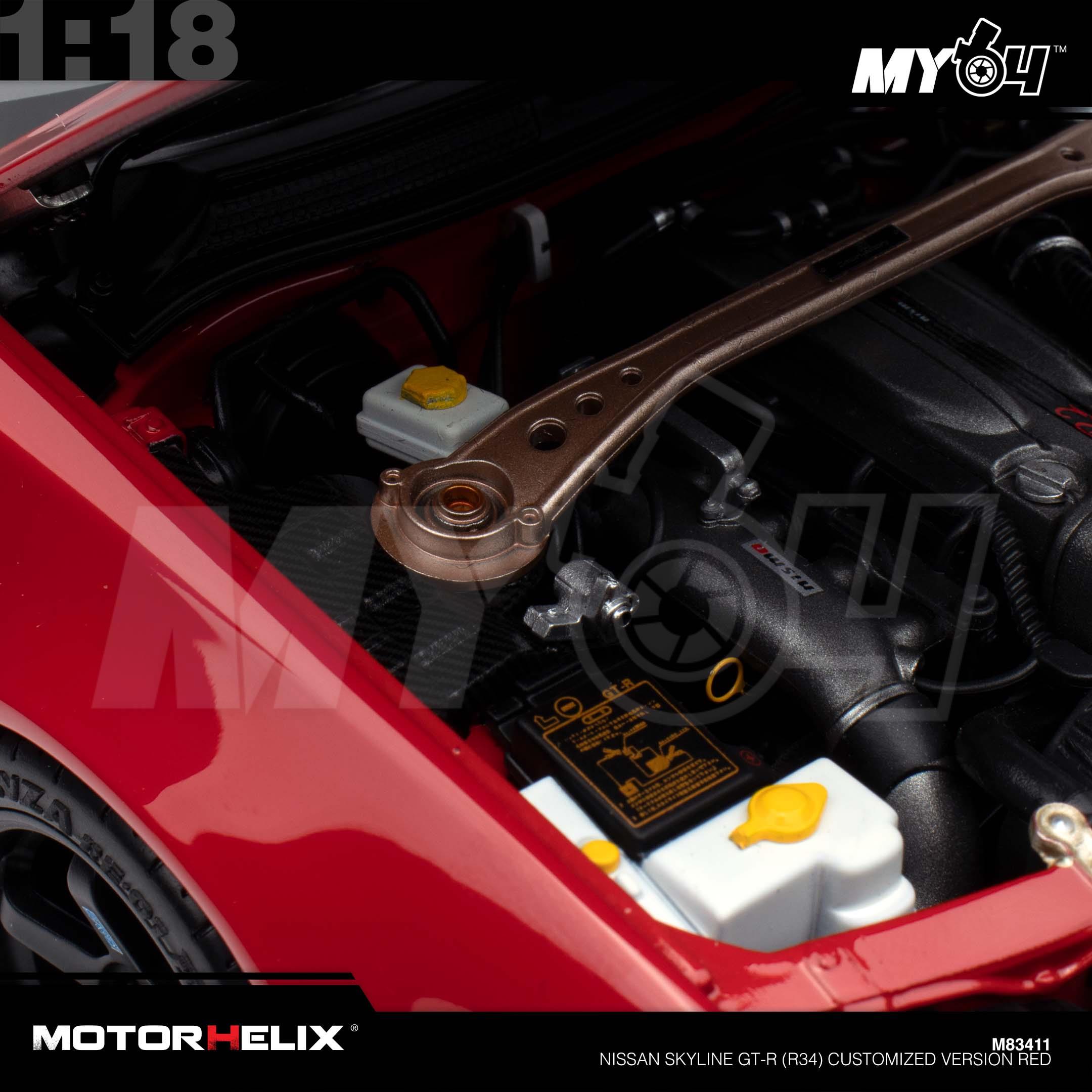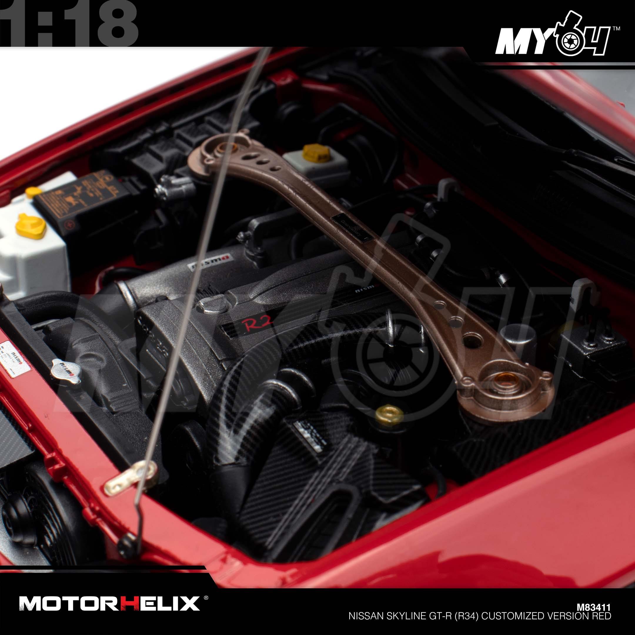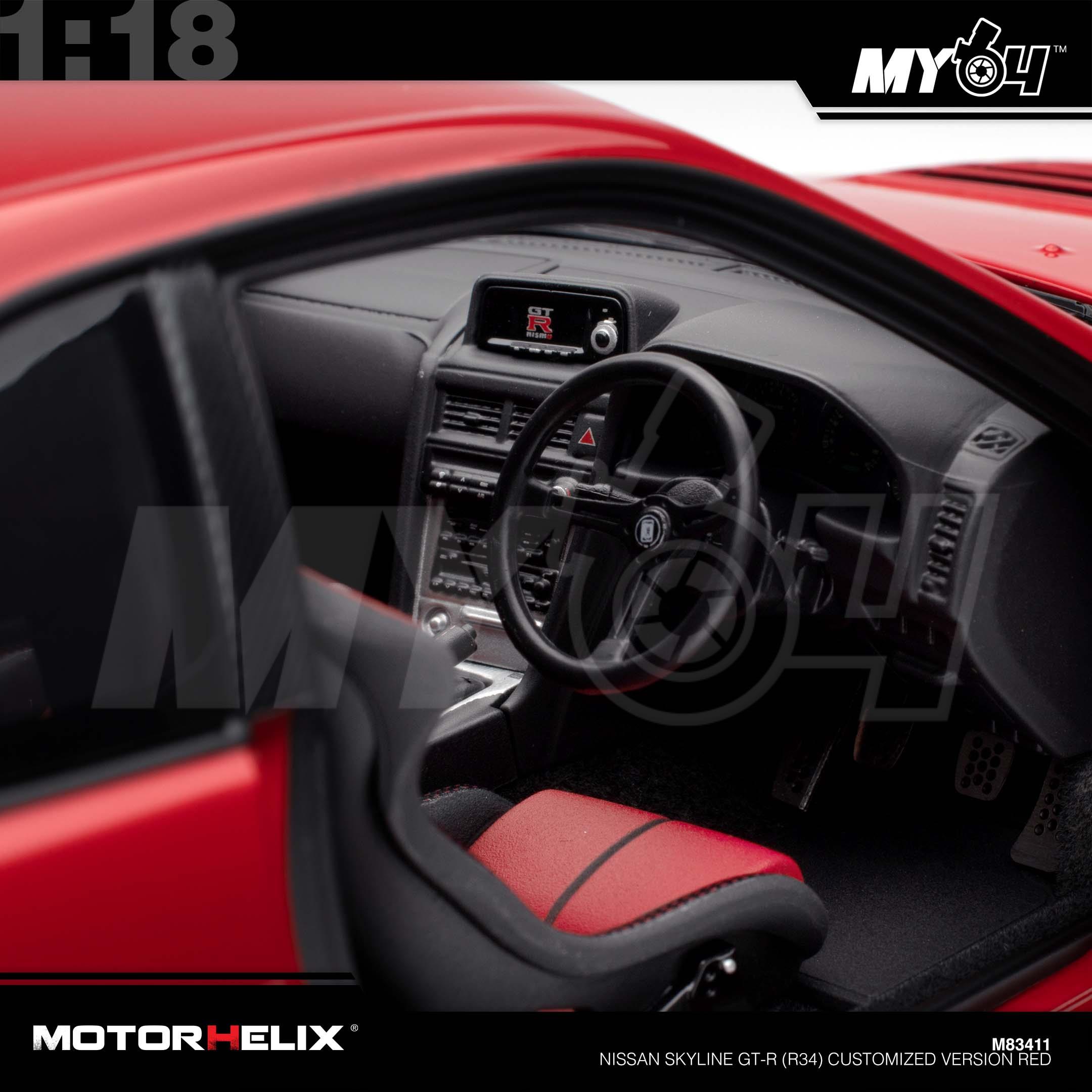 1:18 MOTORHELIX Nissan Skyline GT-R (R34) Customized Version Red