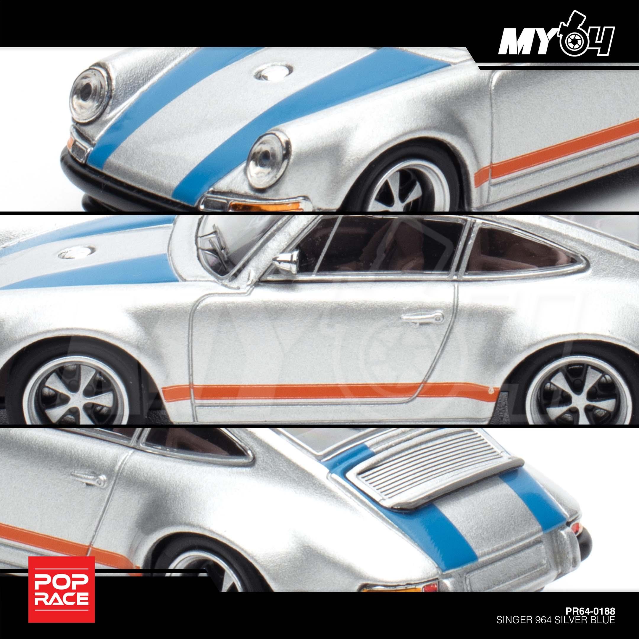 1:64 POP RACE Singer 964 Silver Blue