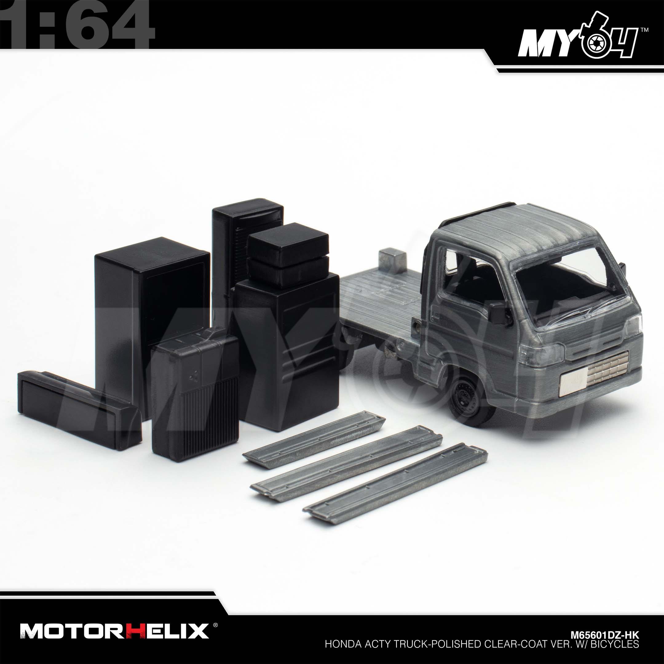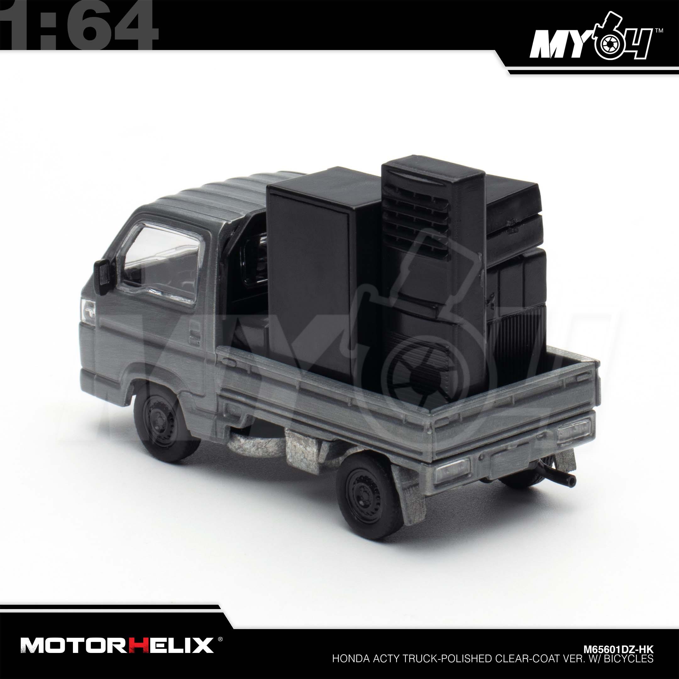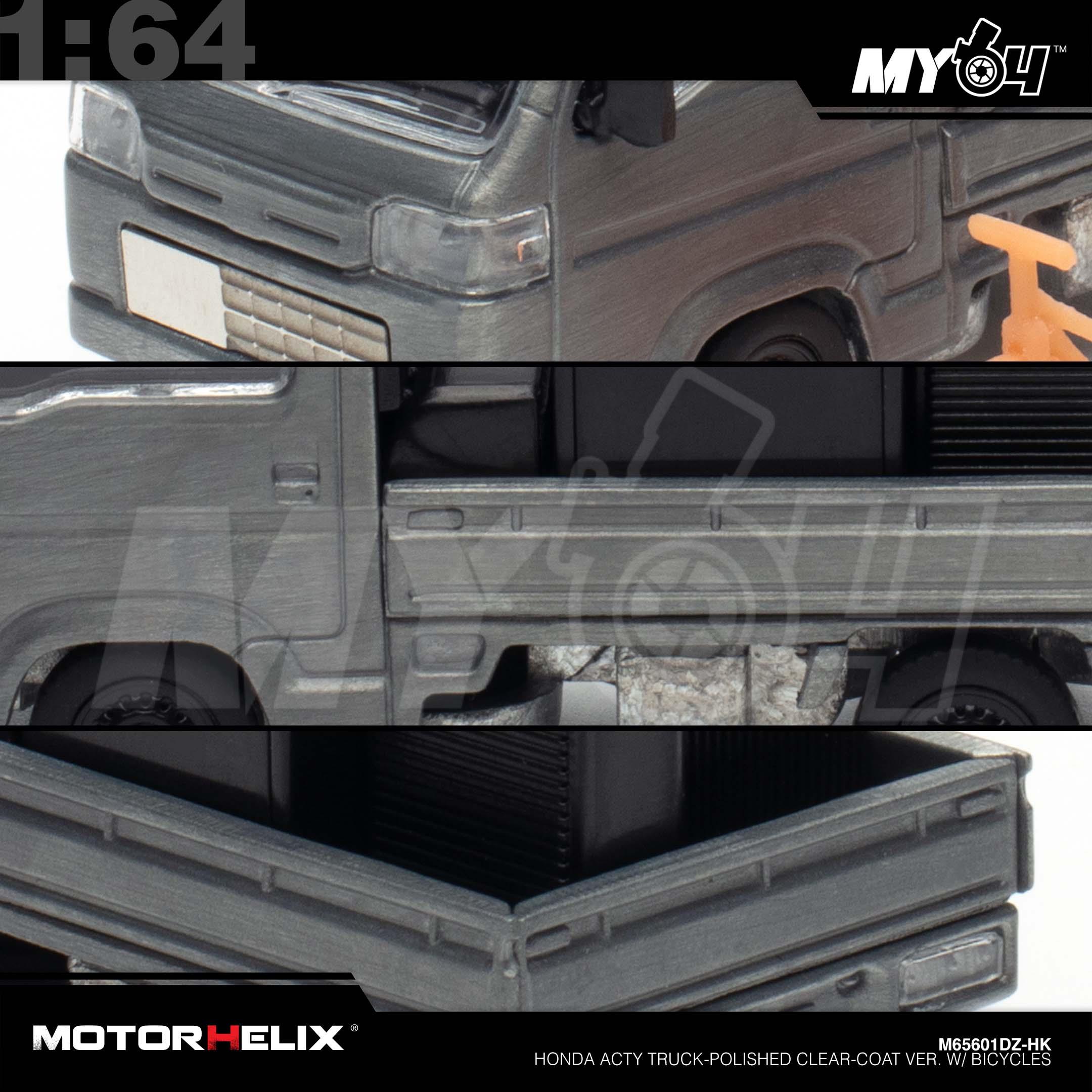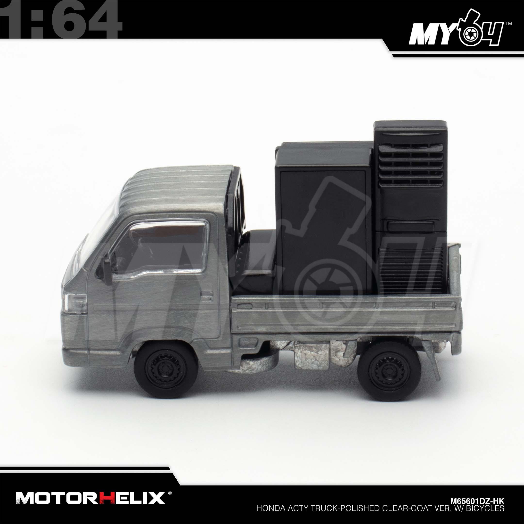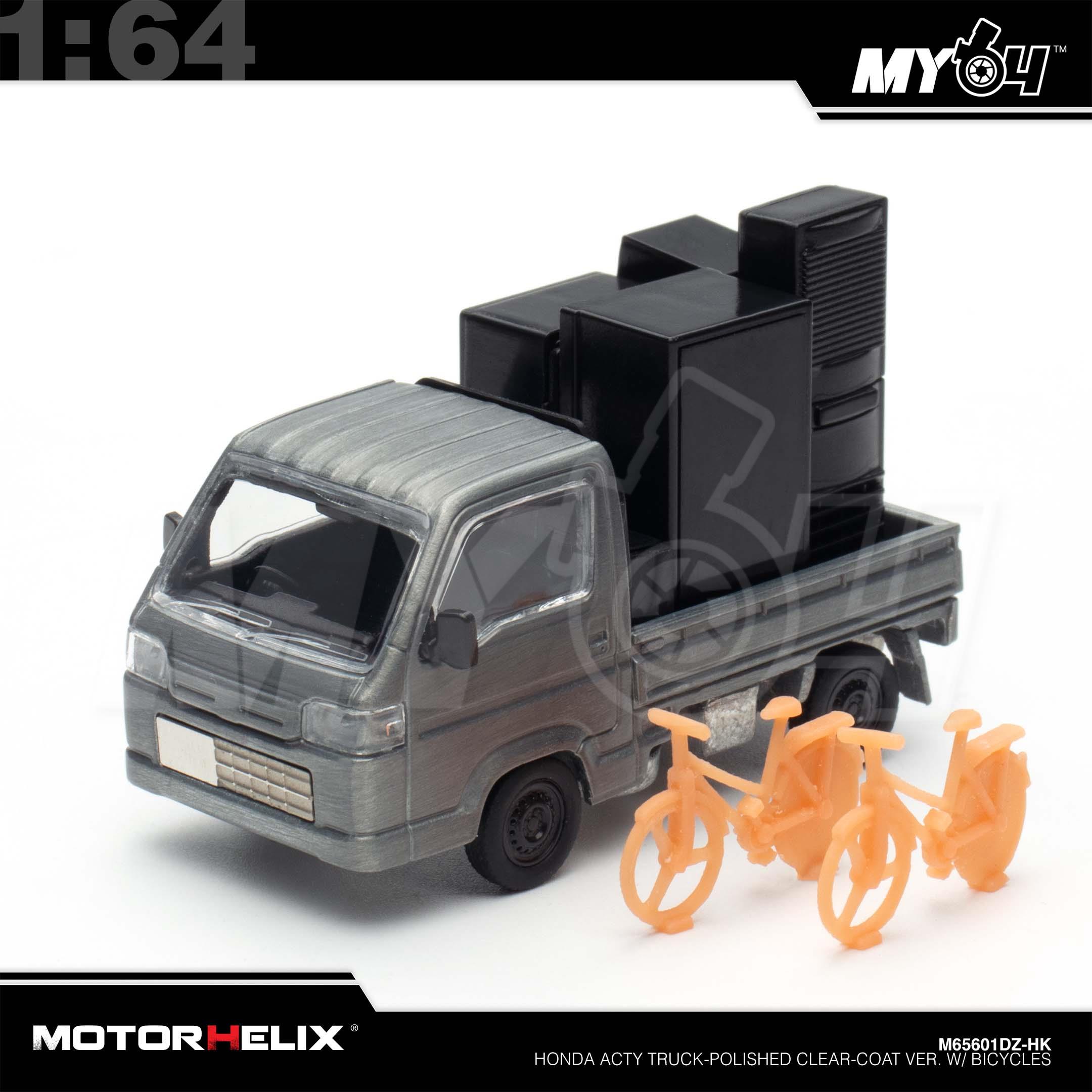 1:64 MOTORHELIX Honda Acty Truck-Polished Clear-Coat Ver. w/ Bicycles