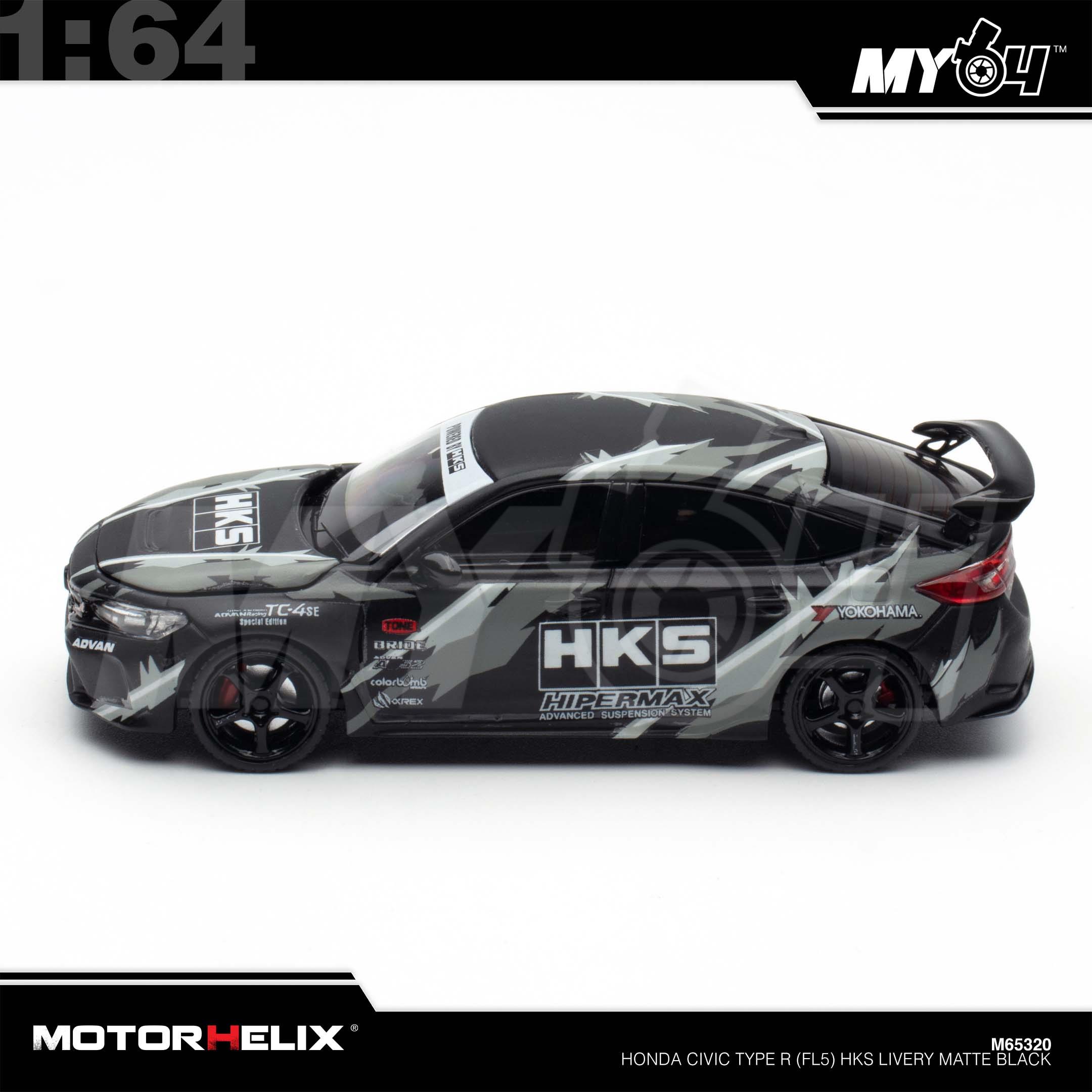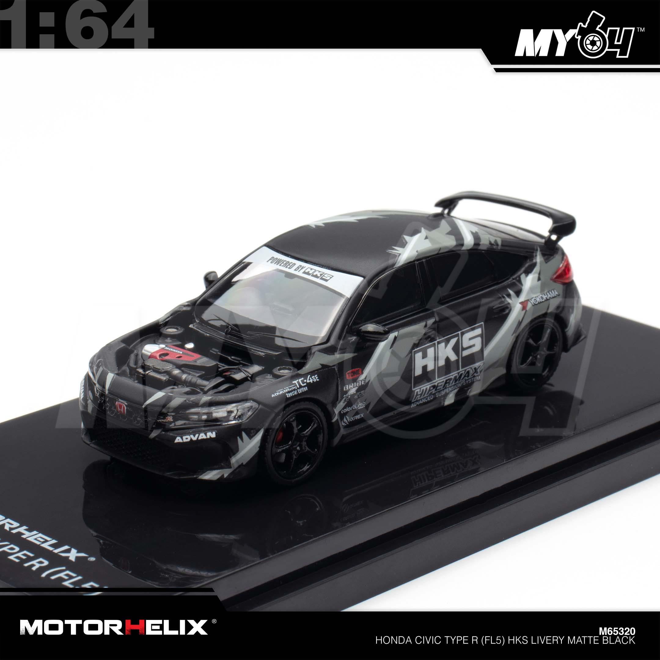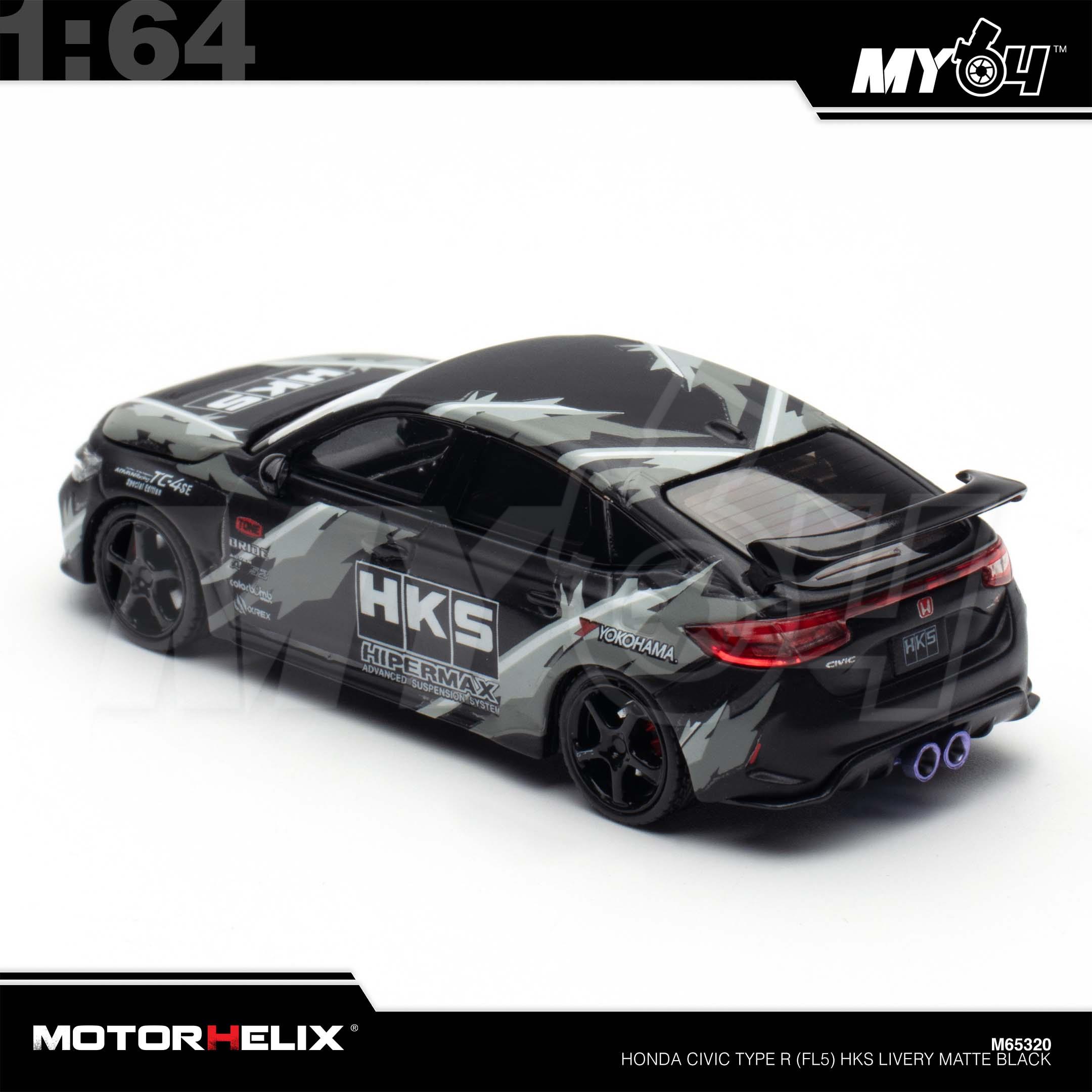 1:64 MOTORHELIX Honda Civic Type R (FL5) HKS Livery Matte Black