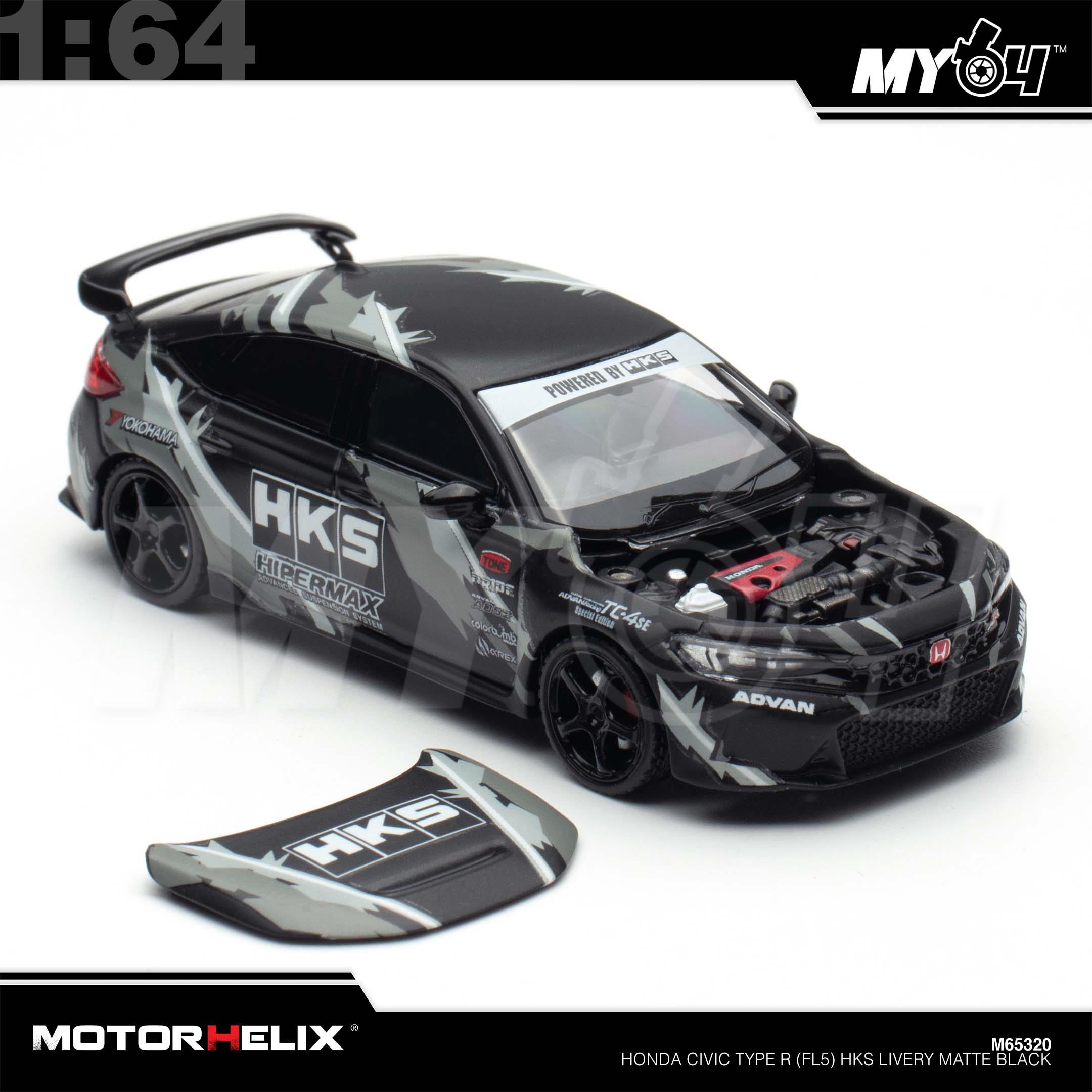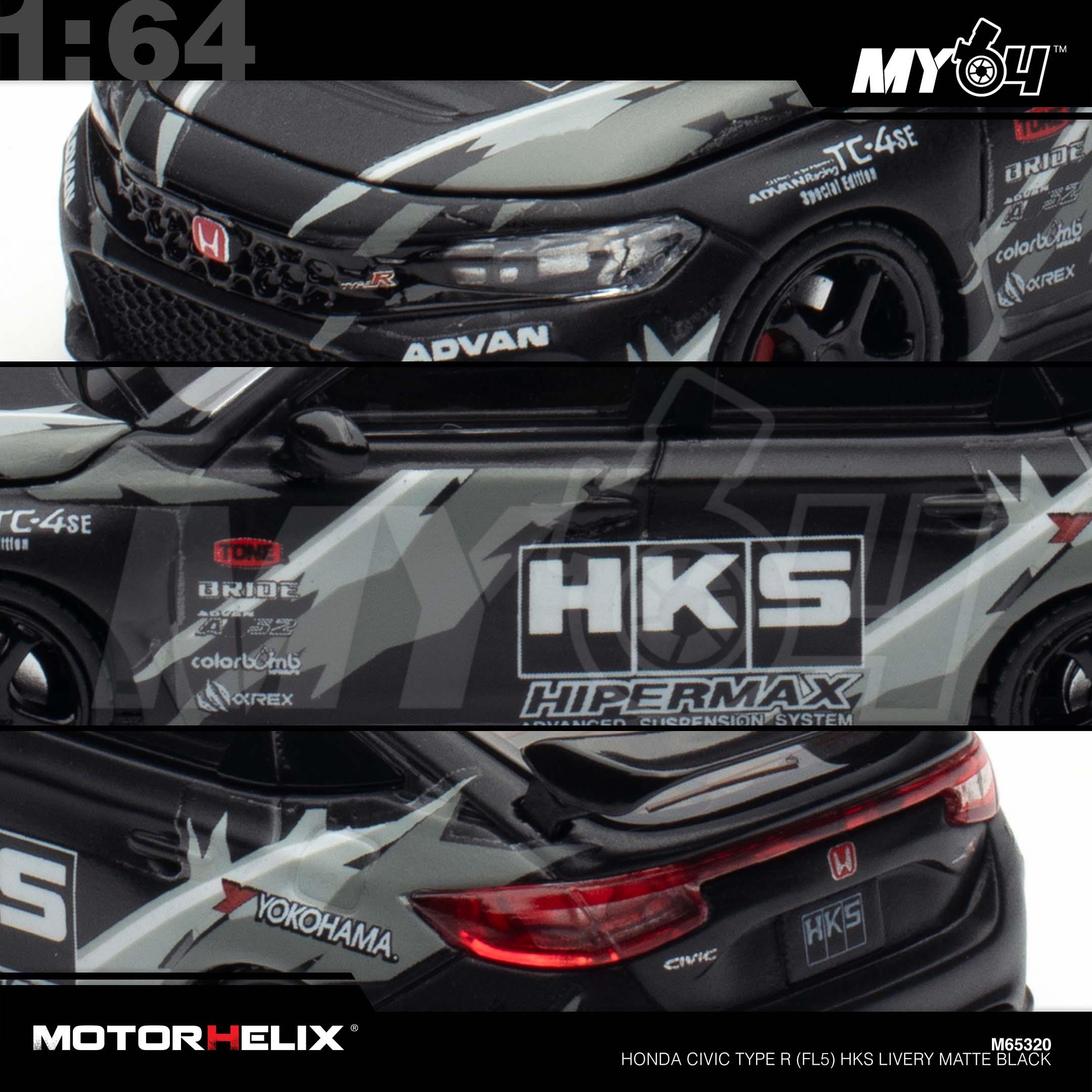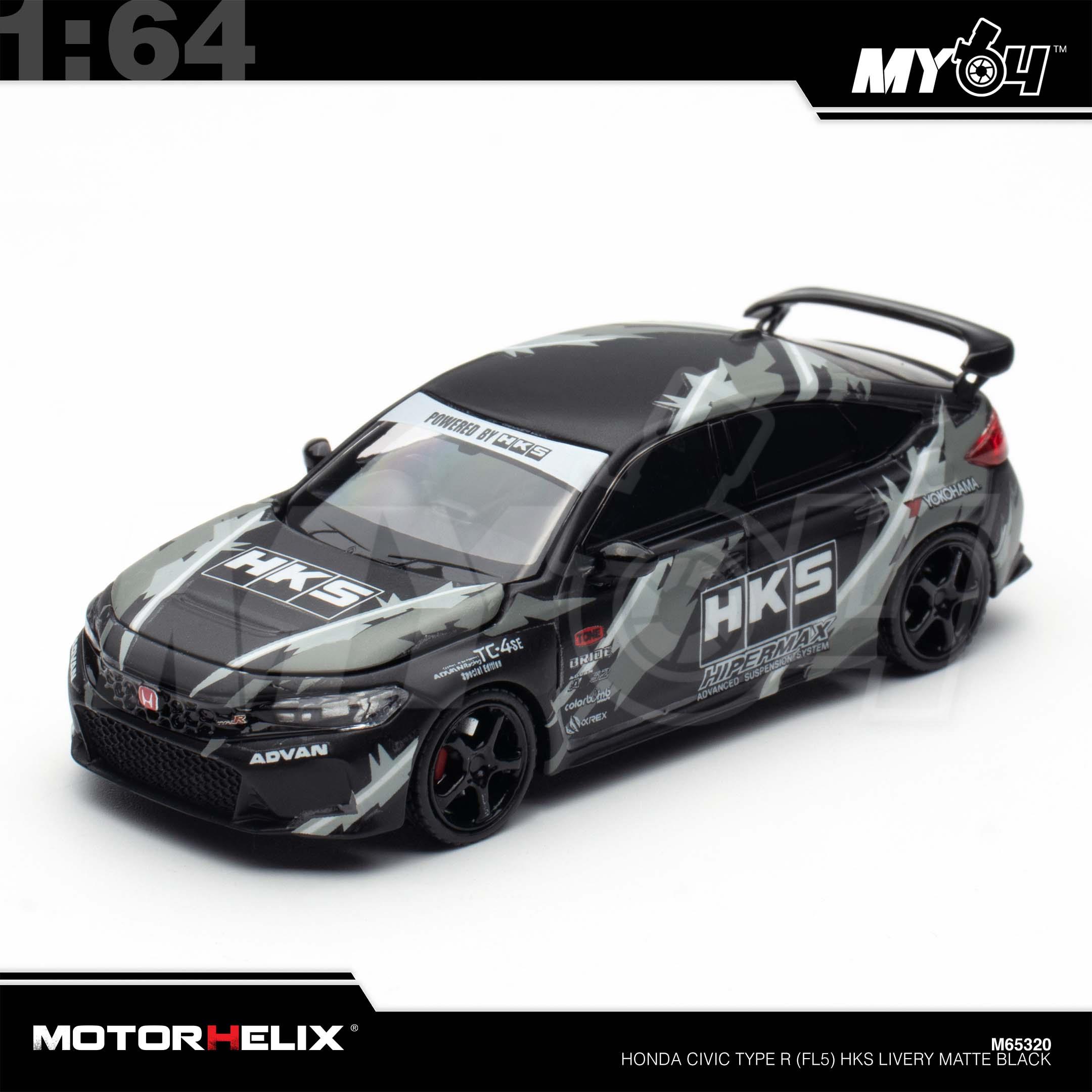 1:64 MOTORHELIX Honda Civic Type R (FL5) HKS Livery Matte Black