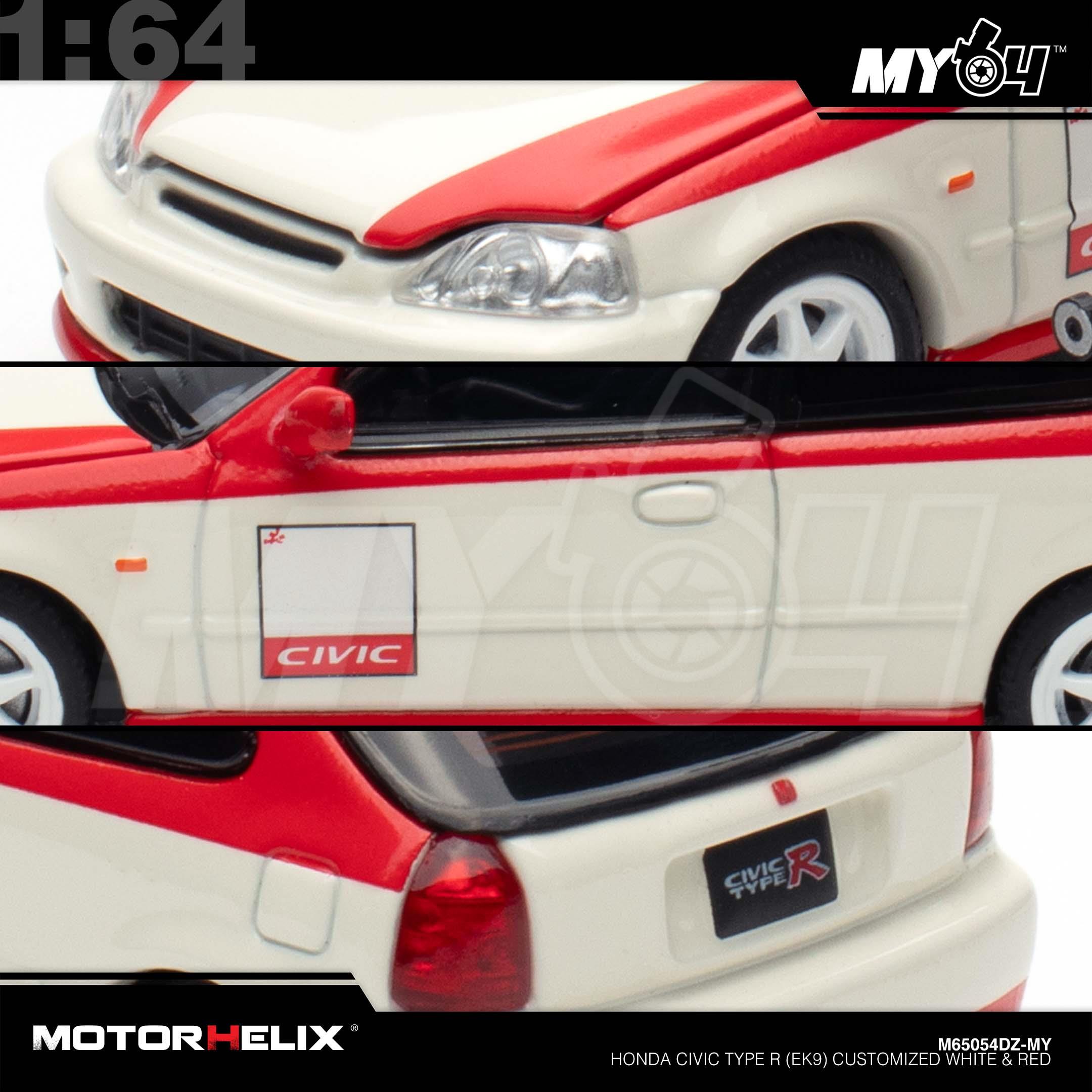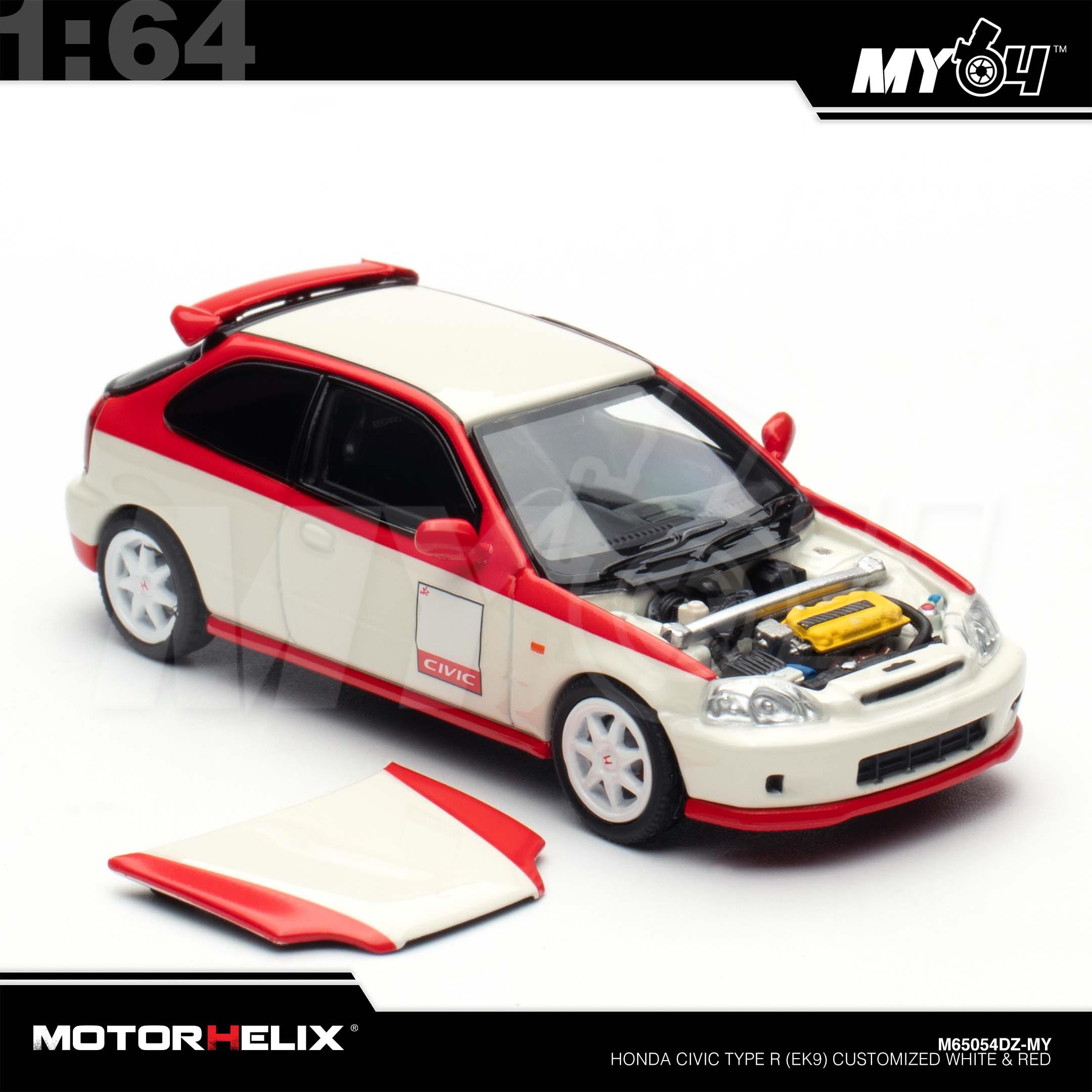 1:64 MOTORHELIX Honda Civic Type R (EK9) Customized White & Red
