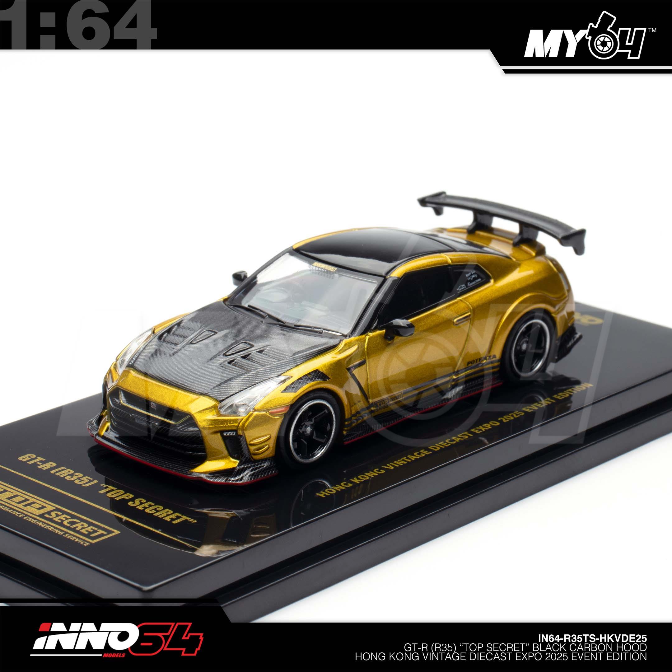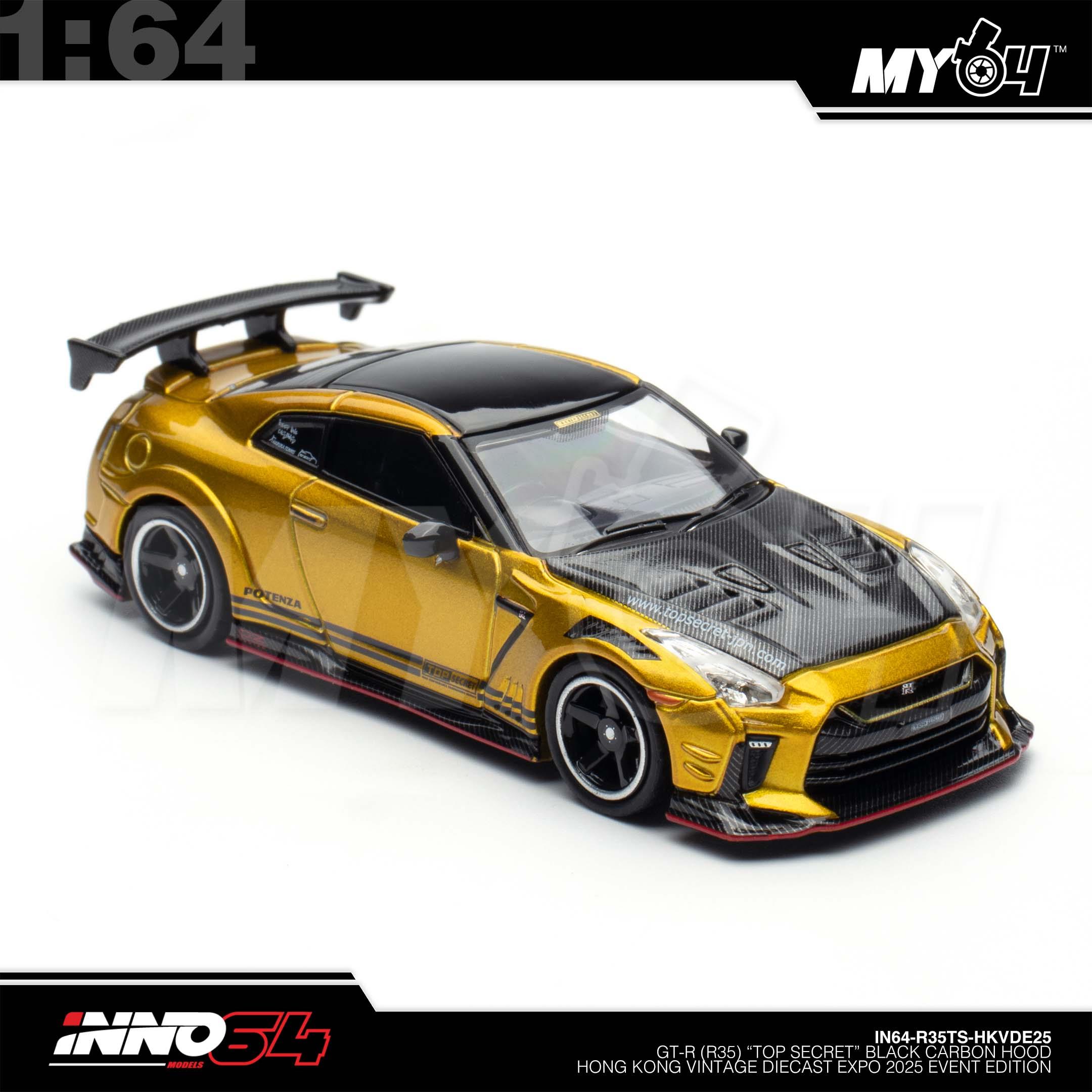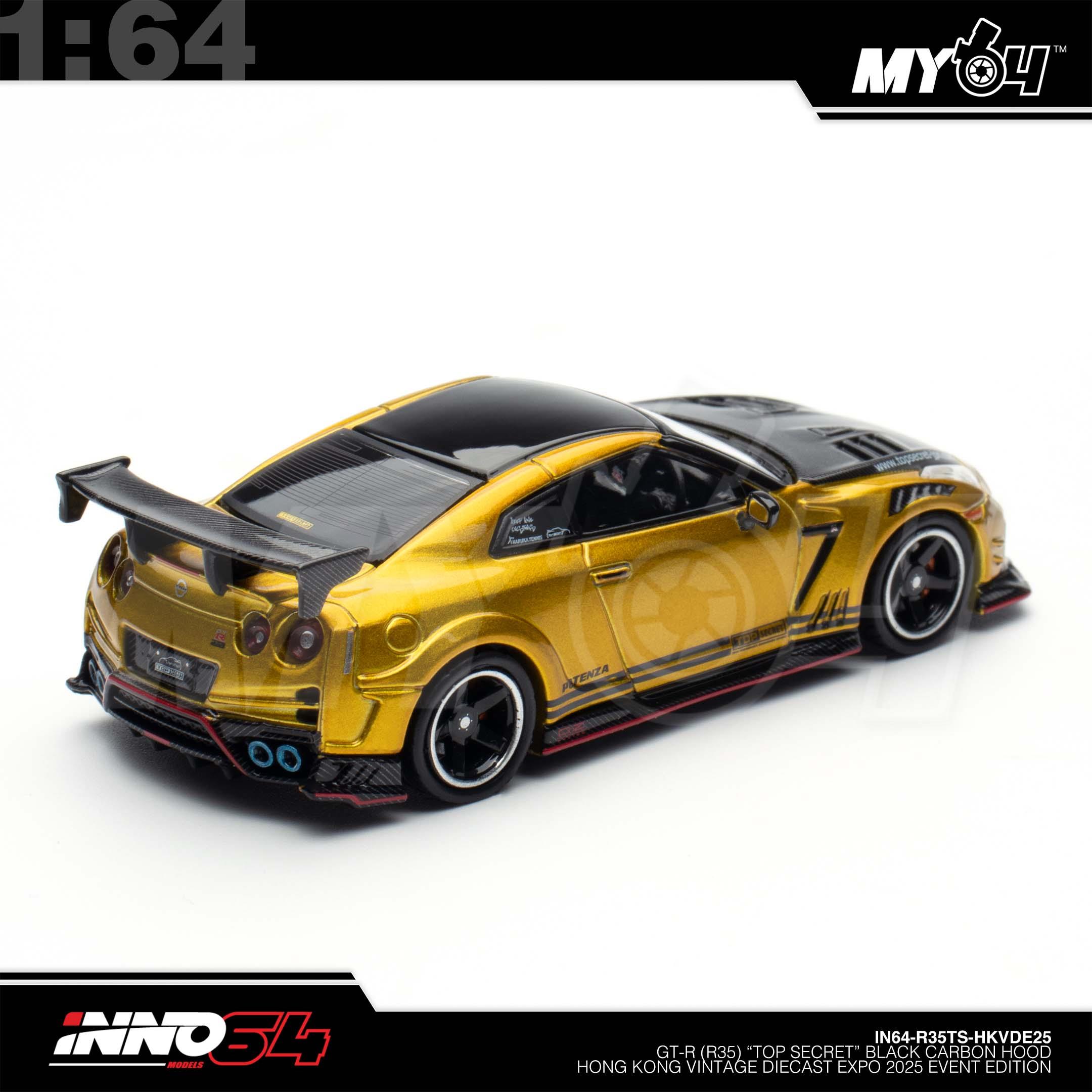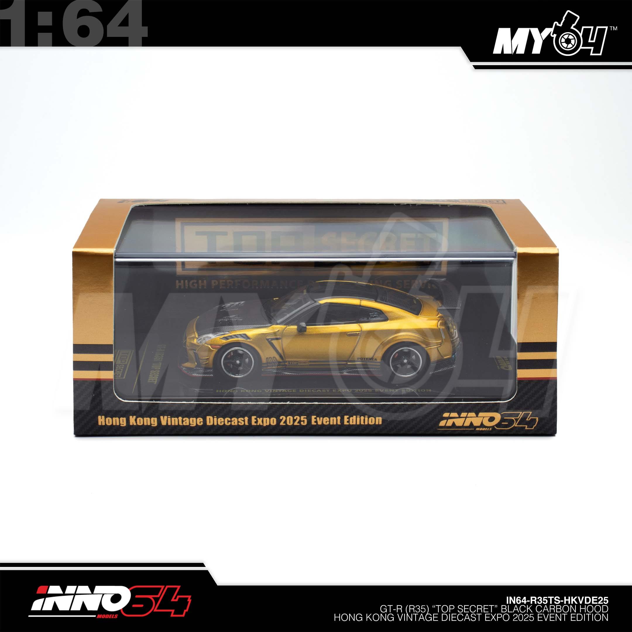 1:64 INNO64 GT-R (R35) "Top Secret" Black Carbon Hood Hong Kong Vintage Diecast Expo 2025 Event Edition