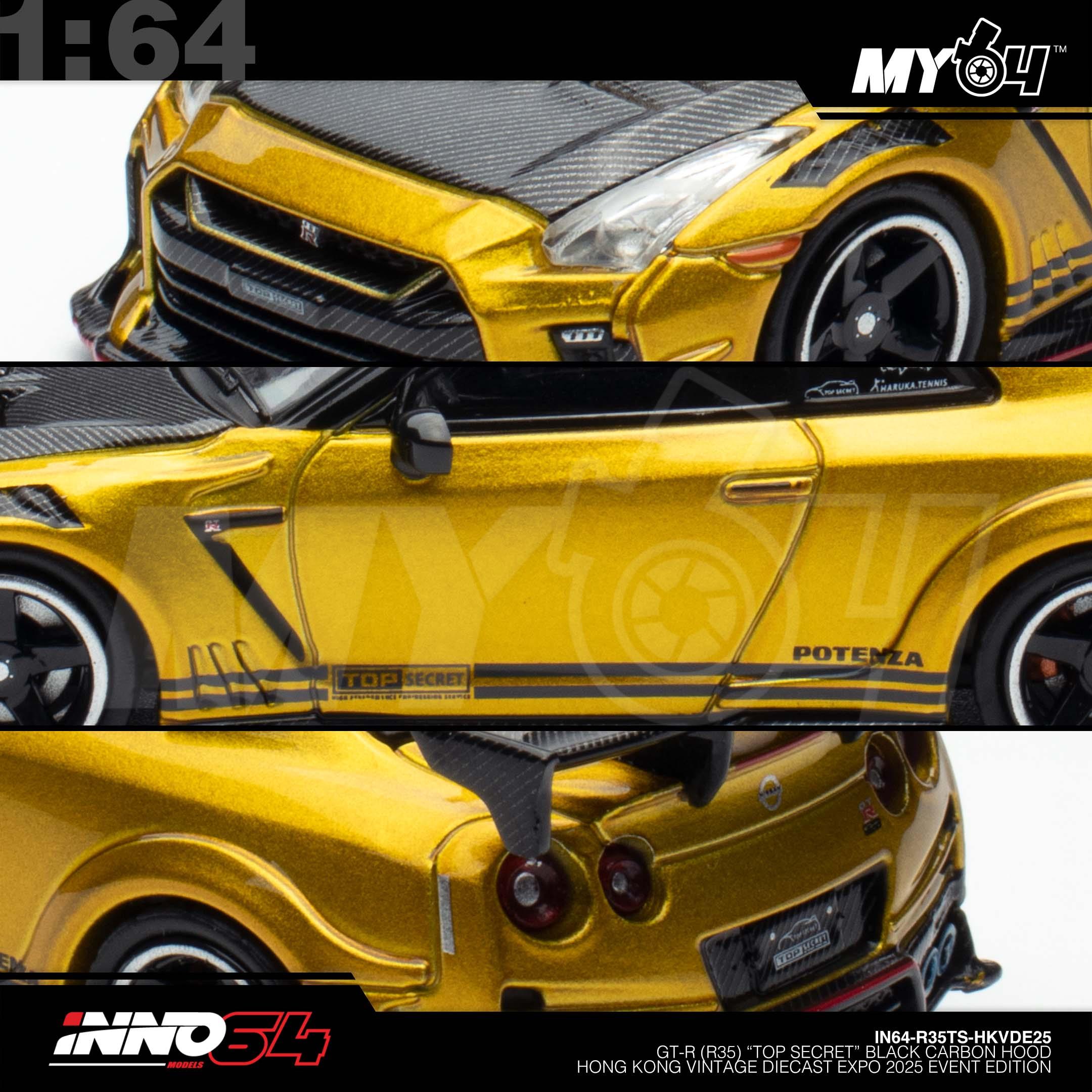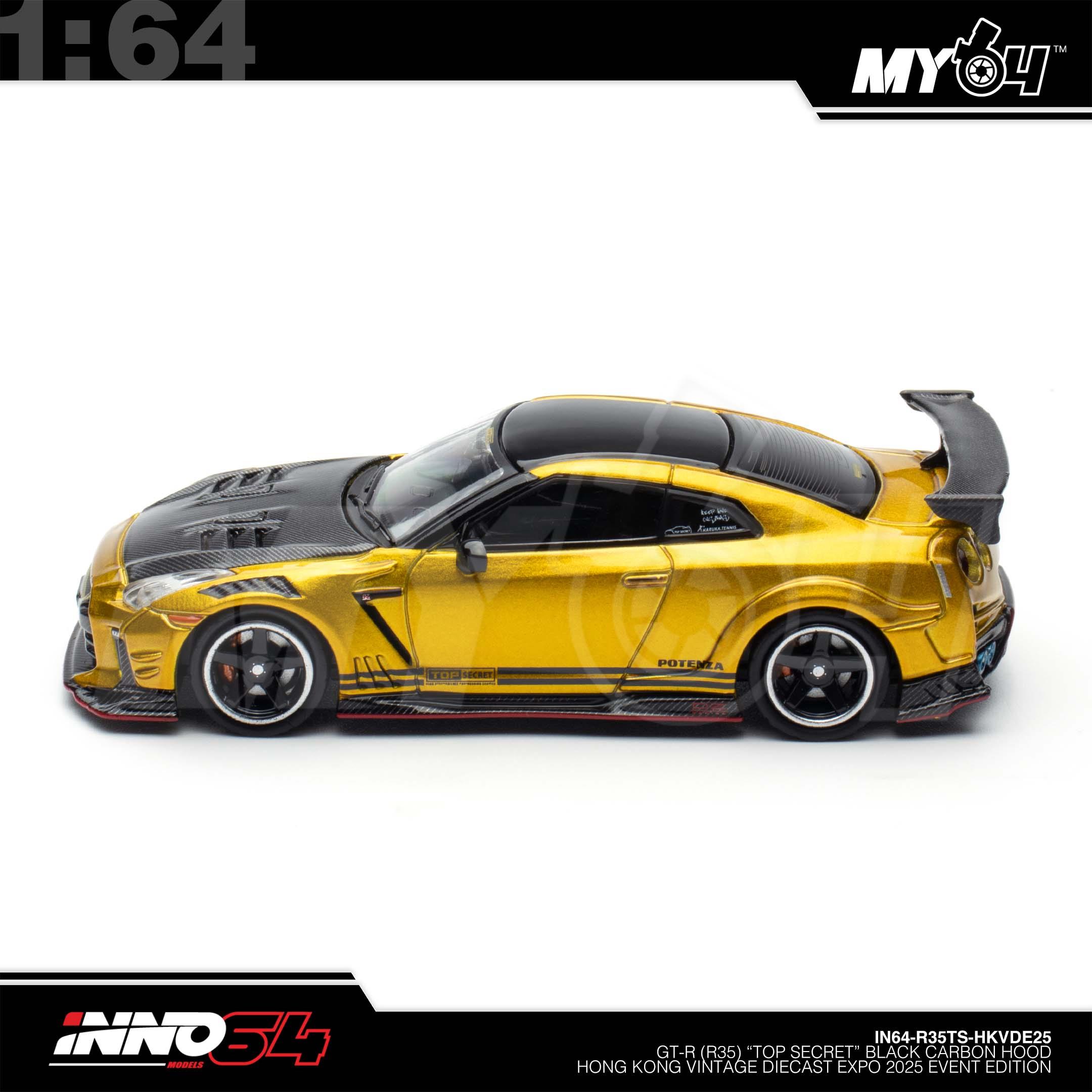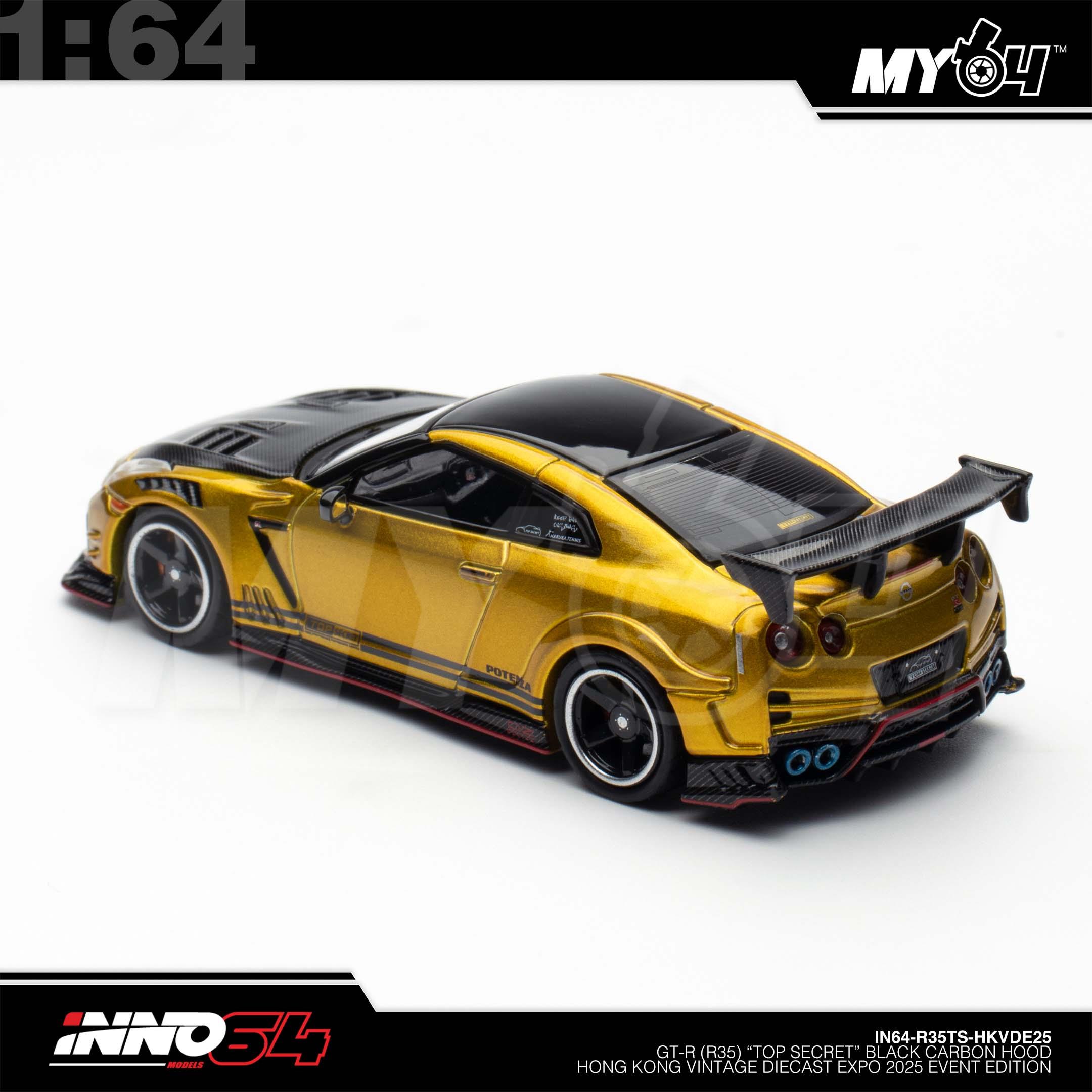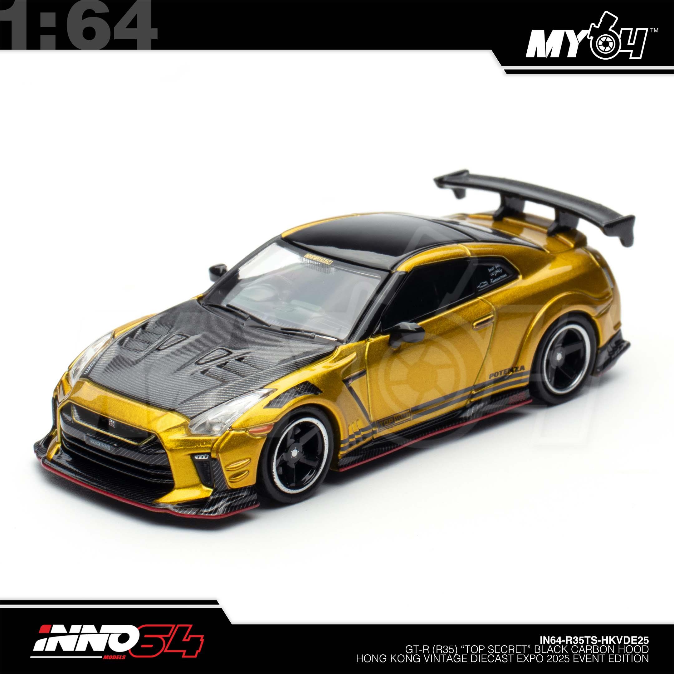 1:64 INNO64 GT-R (R35) "Top Secret" Black Carbon Hood Hong Kong Vintage Diecast Expo 2025 Event Edition